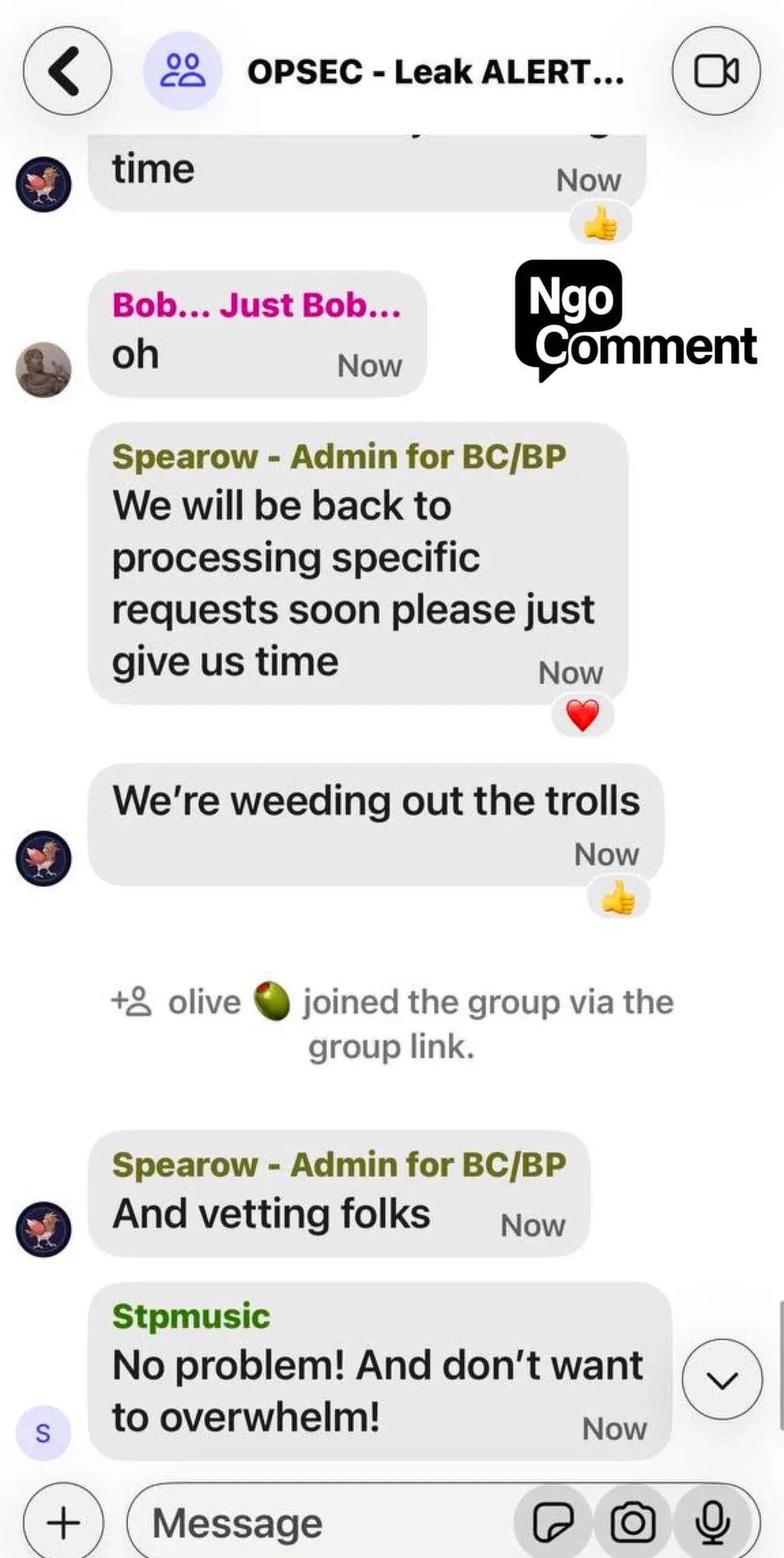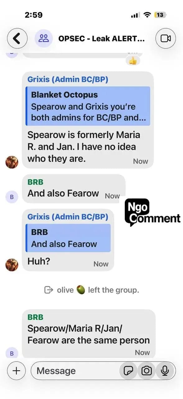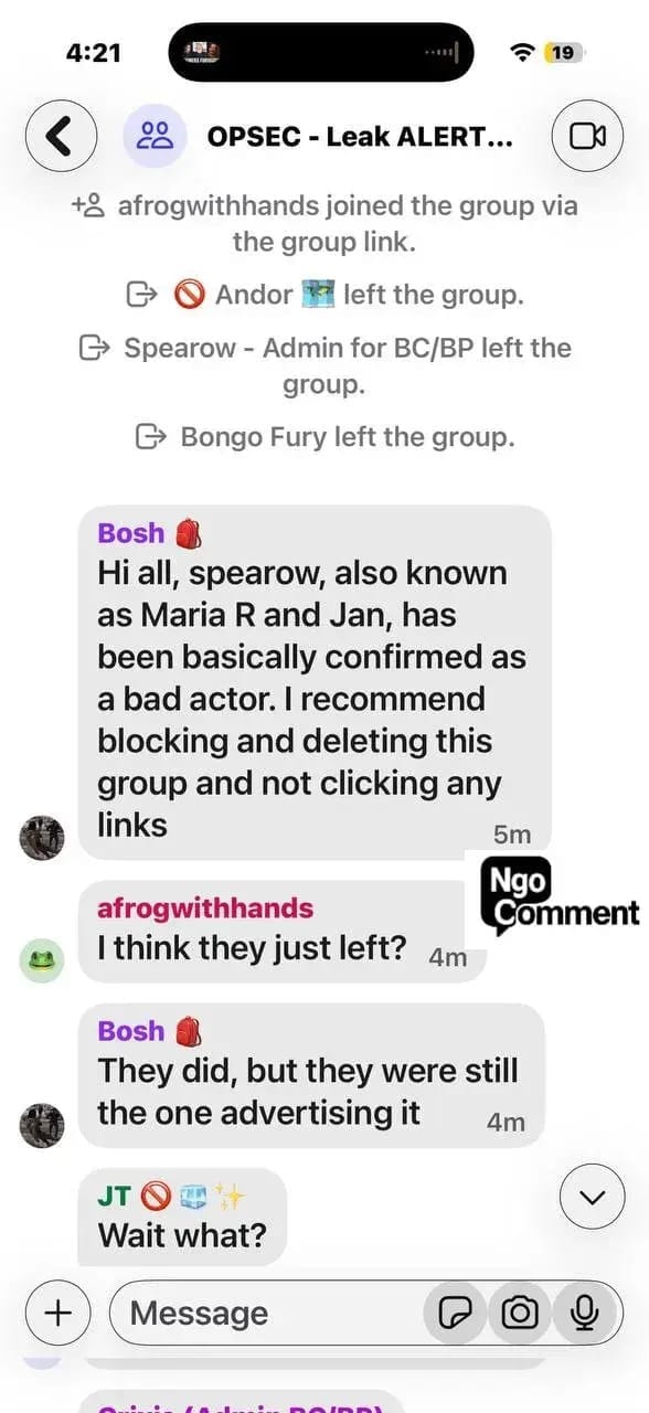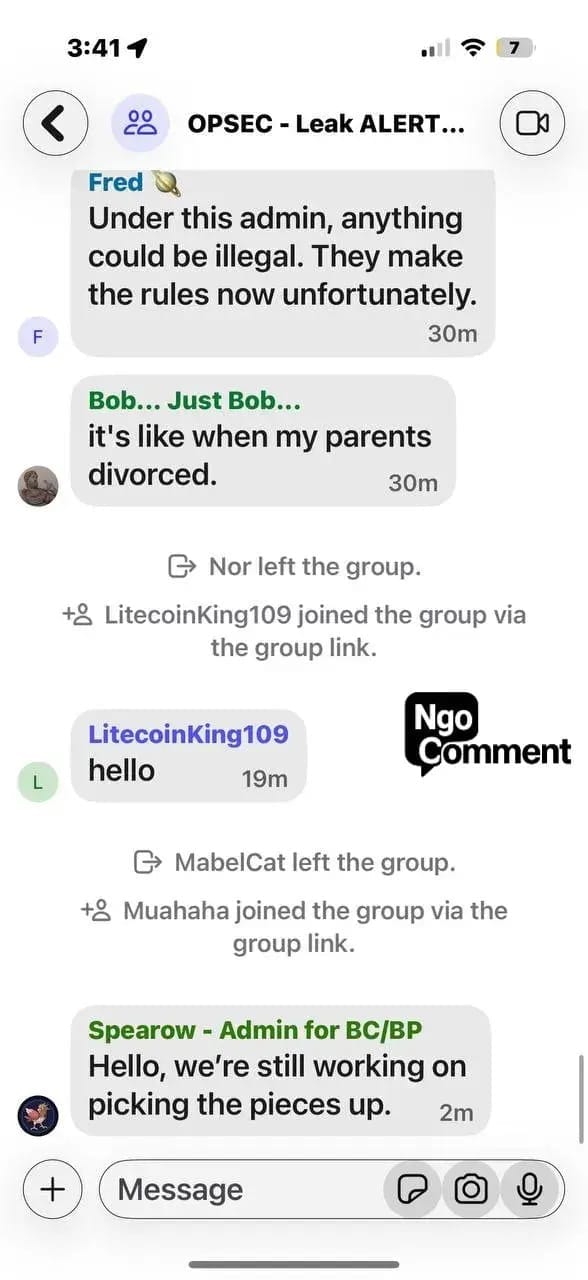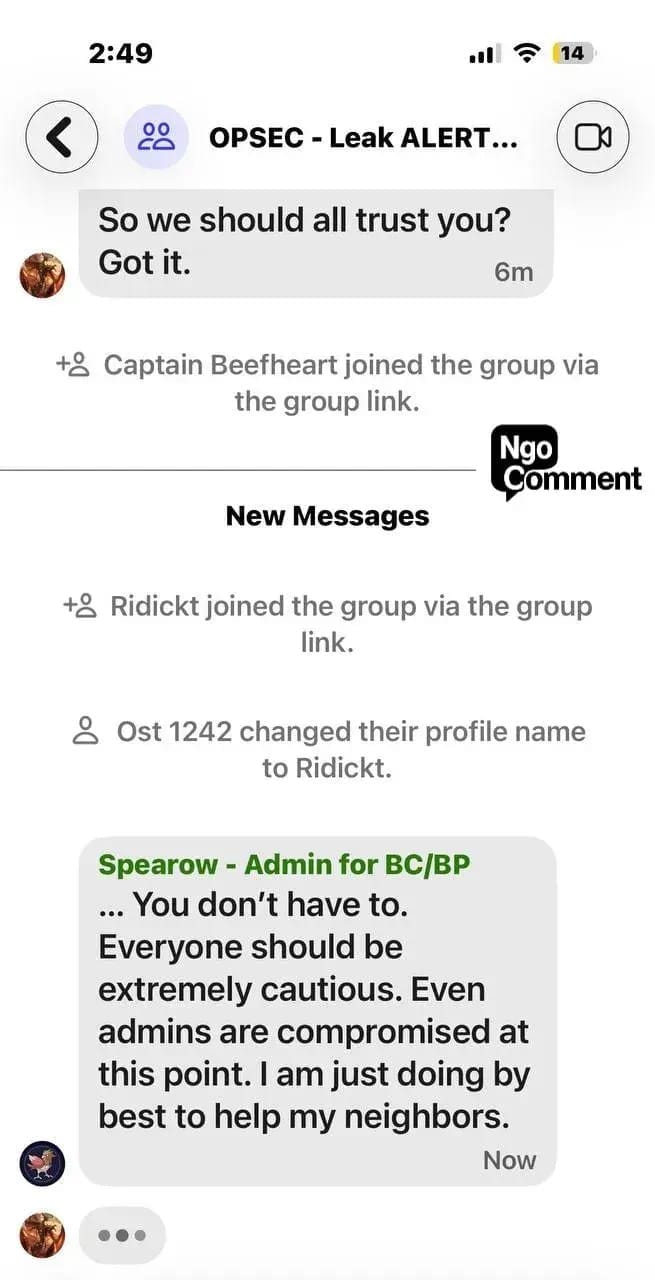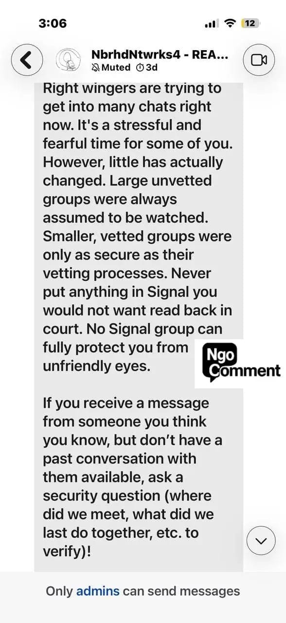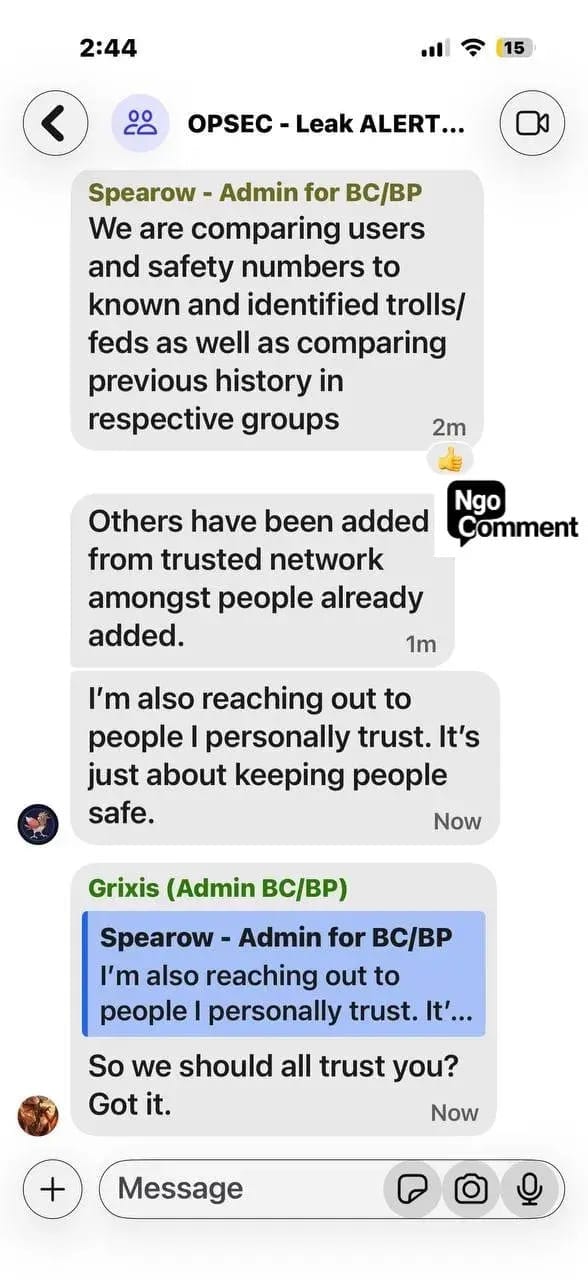 Ngo reports that paranoia now dominates these networks. Administrators accuse one another of being bad actors. Users argue over trust and control. Some groups fracture and retreat into smaller, supposedly vetted cells, a pattern consistent with clandestine organizing rather than lawful protest.