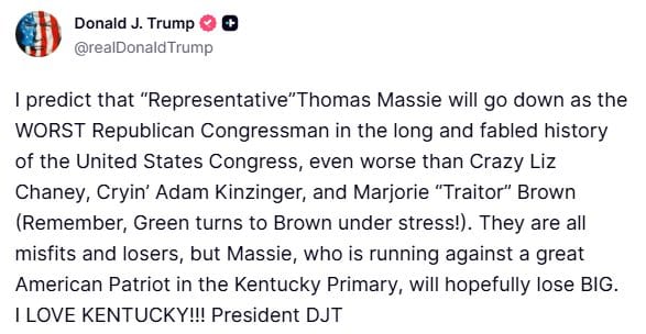 — Former Congresswoman Marjorie Taylor Greene🇺🇸 (@FmrRepMTG) April 7, 2026