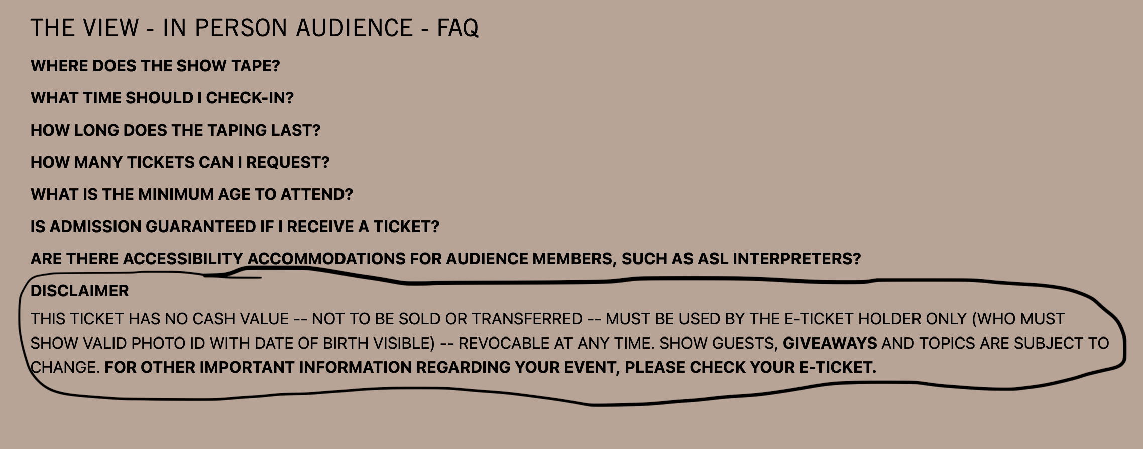 - What Happened: The View requires all audience members to show a valid government-issued photo ID that matches their ticket reservation to attend the show.